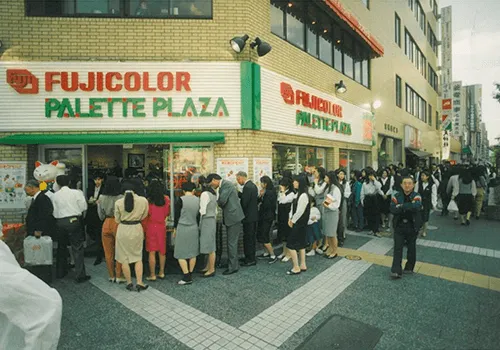 昭和61年(1986年)、日本の写真文化史に刻まれる二つの出来事が同時に起こった。富士フイルムによる「写ルンです」の発売と、名古屋でのパレットプラザ1号店の誕生である。偶然の一致に見えるこの現象は、実は必然だったといえる。カメラを持ったことのない人々が気軽にシャッターを切り、街角の現像店でその思い出を形にする——。「誰もが写真家になれる時代」の幕開けの歴史を紐とく。