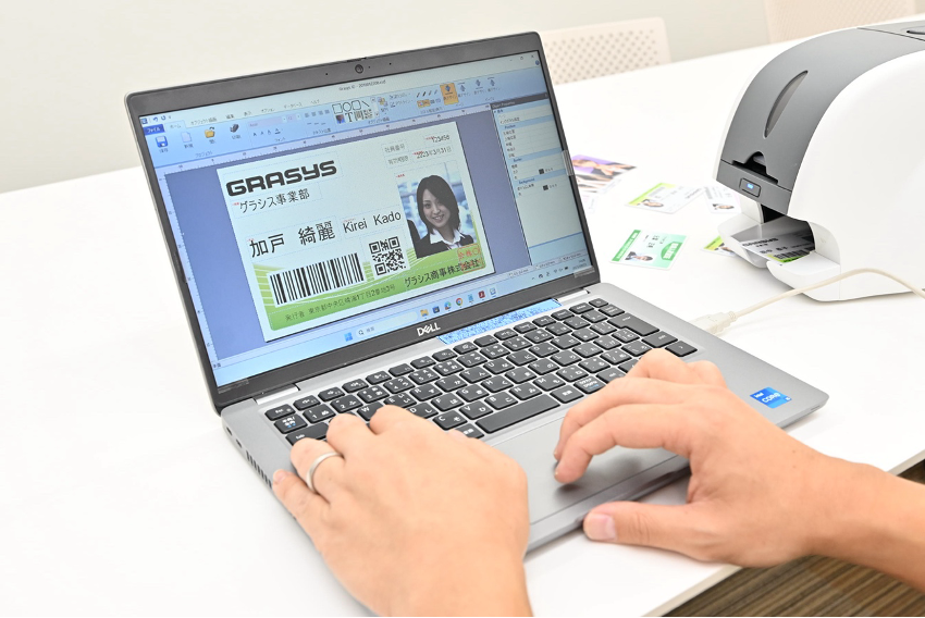 納期の面でも優位性があります。外注では通常数日から1週間かかるところ、GRASYSなら必要なときにその場で発行可能です。新入社員が入社した当日に社員証を渡せますし、従業員が紛失した際も、すぐに再発行できます