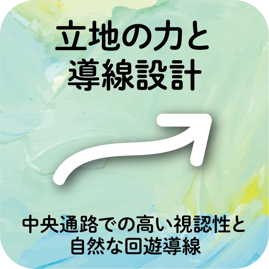 【立地の力と導線設計】コンコース中央という最高の導線。売場コーナー全体を回遊できるレイアウトで、「人だかり」がさらに新しい人を呼び込みました。