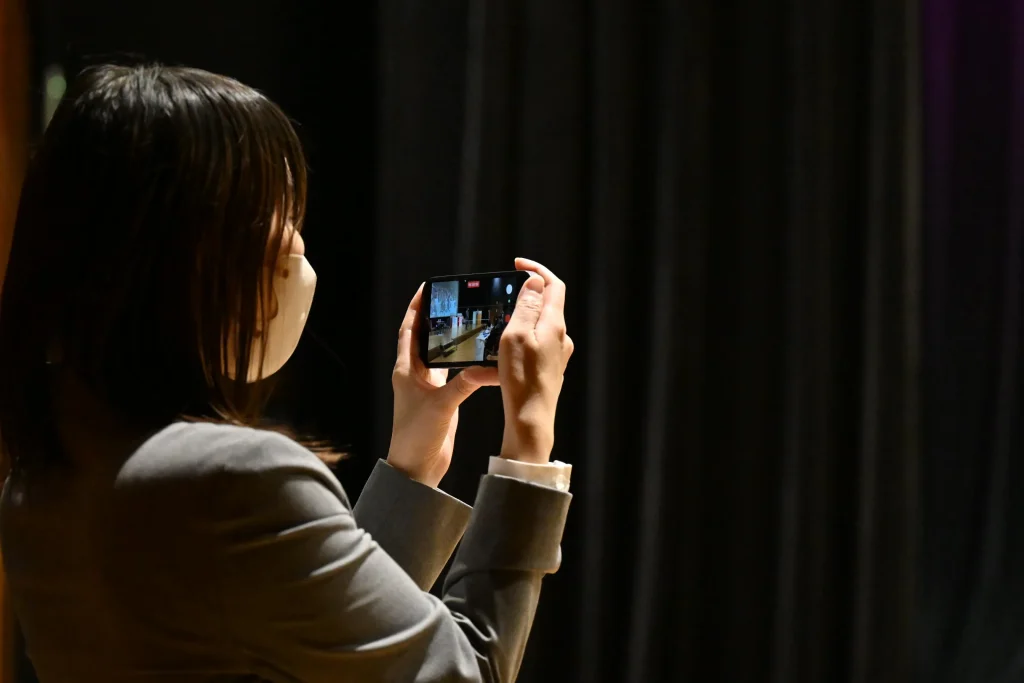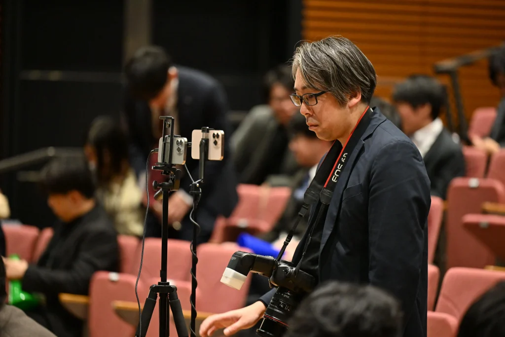 三脚で設置した撮影機材以外に何台ものスマホ撮影で臨場感を伝える