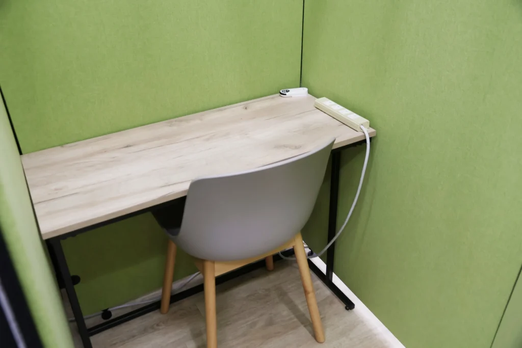 以前よりオンライン会議が増えていて、自席で話していると、他の人の電話の声や雑談などの声と重なってしまい聞こえにくい。