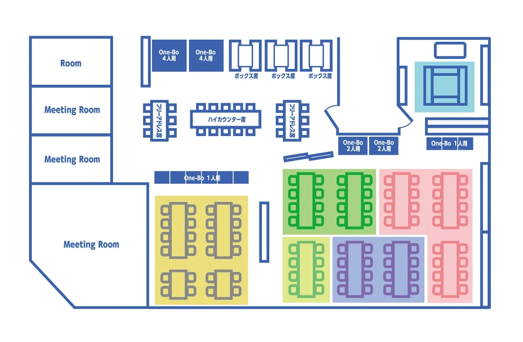 4人用ブースと2人用ブース、1人用ブースと3種類あります。