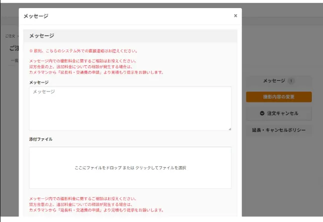 カメラマンさんとのやり取りは、緊急時以外はメッセージフォームで行います。