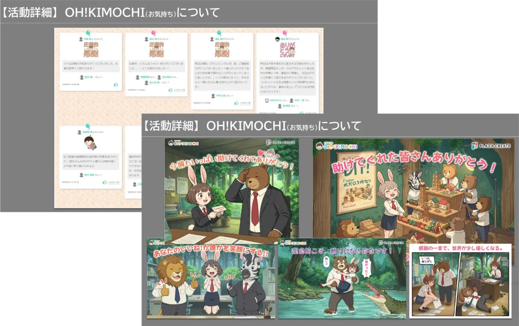 3つ目の施策は少し毛色が異なる。社員同士が感謝を伝え合うコミュニケーションツール「OH!KIMOCHI(お気持ち)」の活用だ。